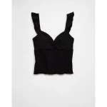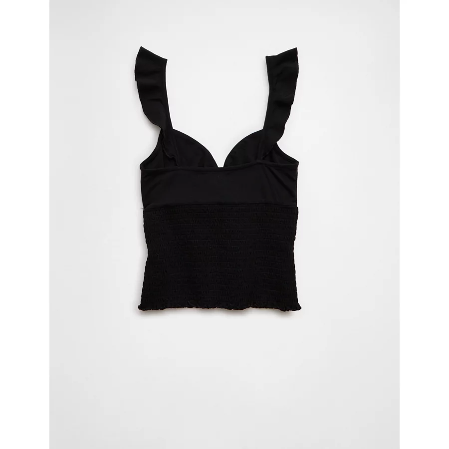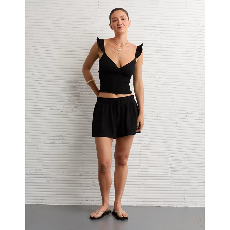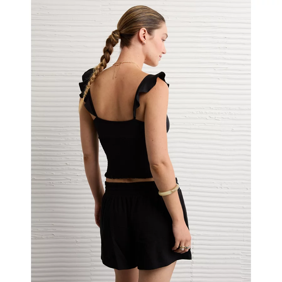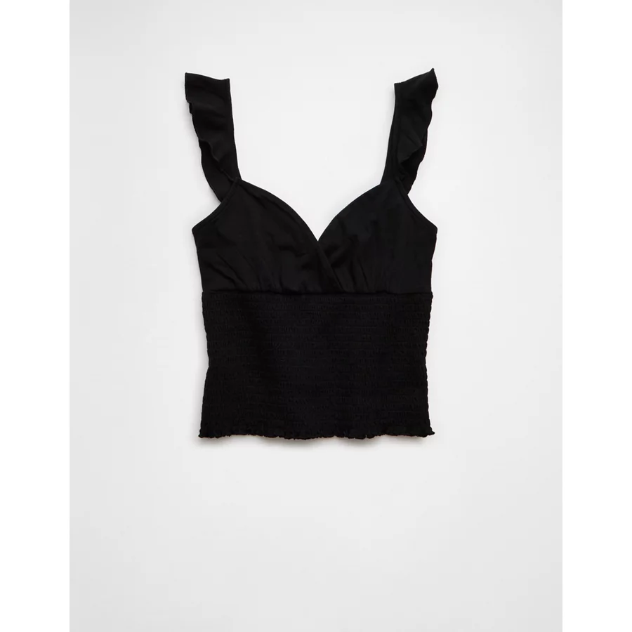 AE Sunchaser Knit Wrap Front Smocked Tank Top – True Black