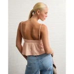 AE Sunchaser Smocked Babydoll Tank Top – Rusty Peach