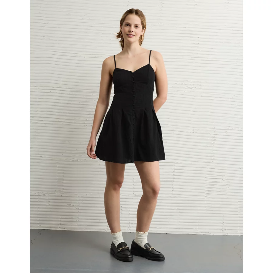 AE Sweetheart Button-Up Mini Dress - Ecru Denim