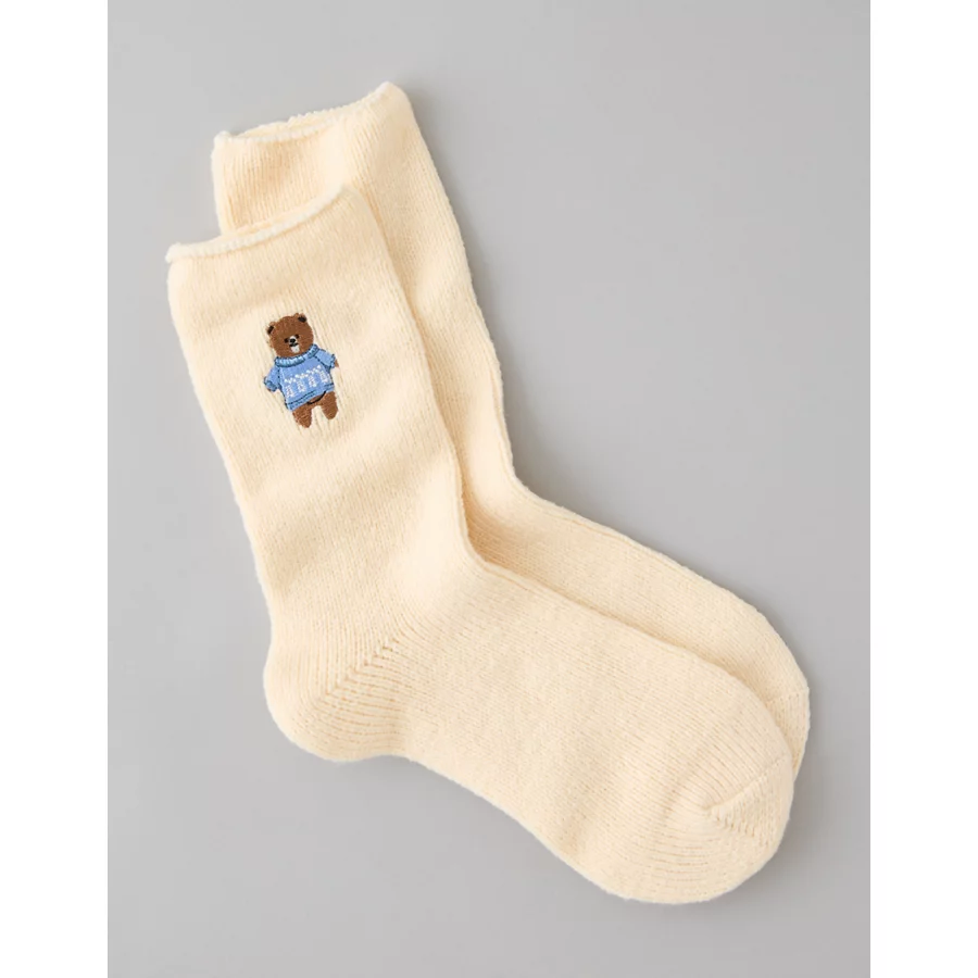 AE Teddy Bear Crew Socks – Cream