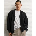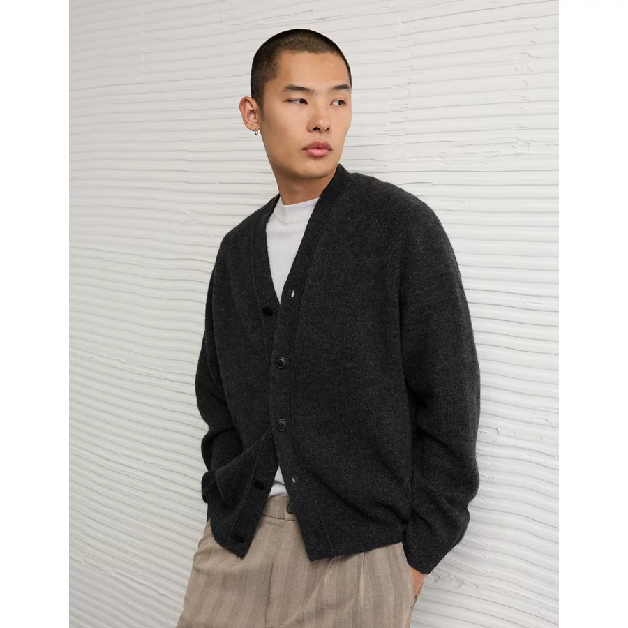 AE Textured Cardigan – Charcoal Heather