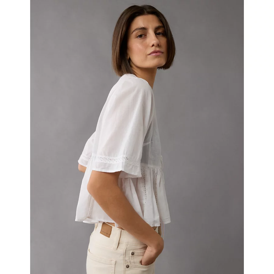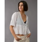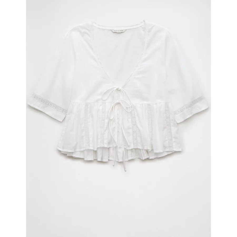 AE Tie Front Bell Flyaway Shirt – White