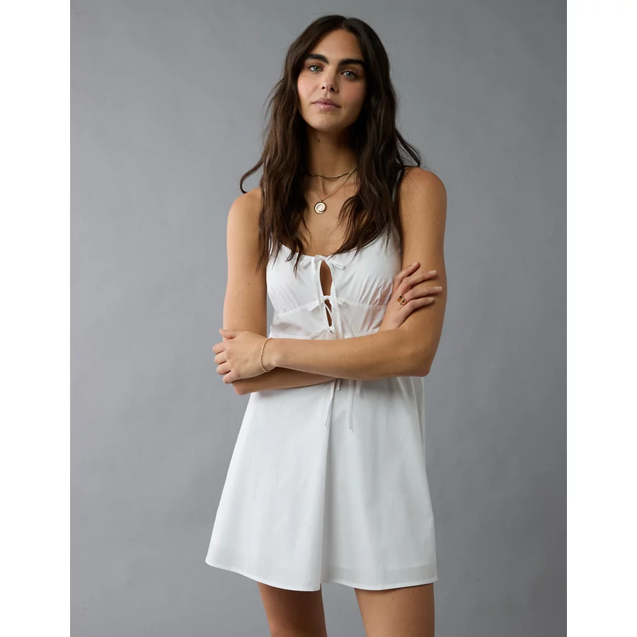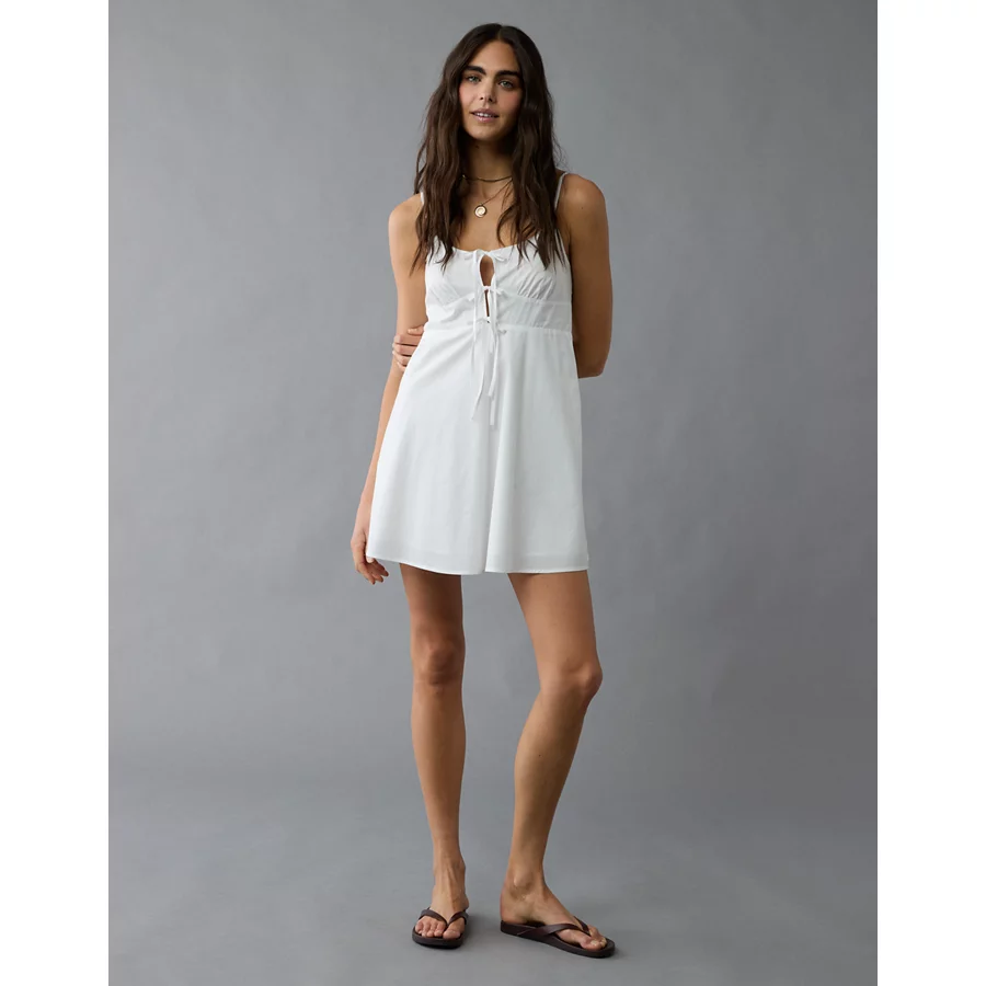 AE Tie Front Flyaway Babydoll Tank Top - Light Heather Gray