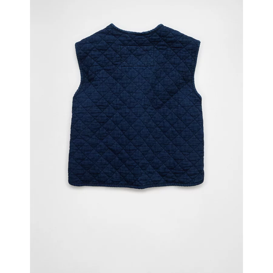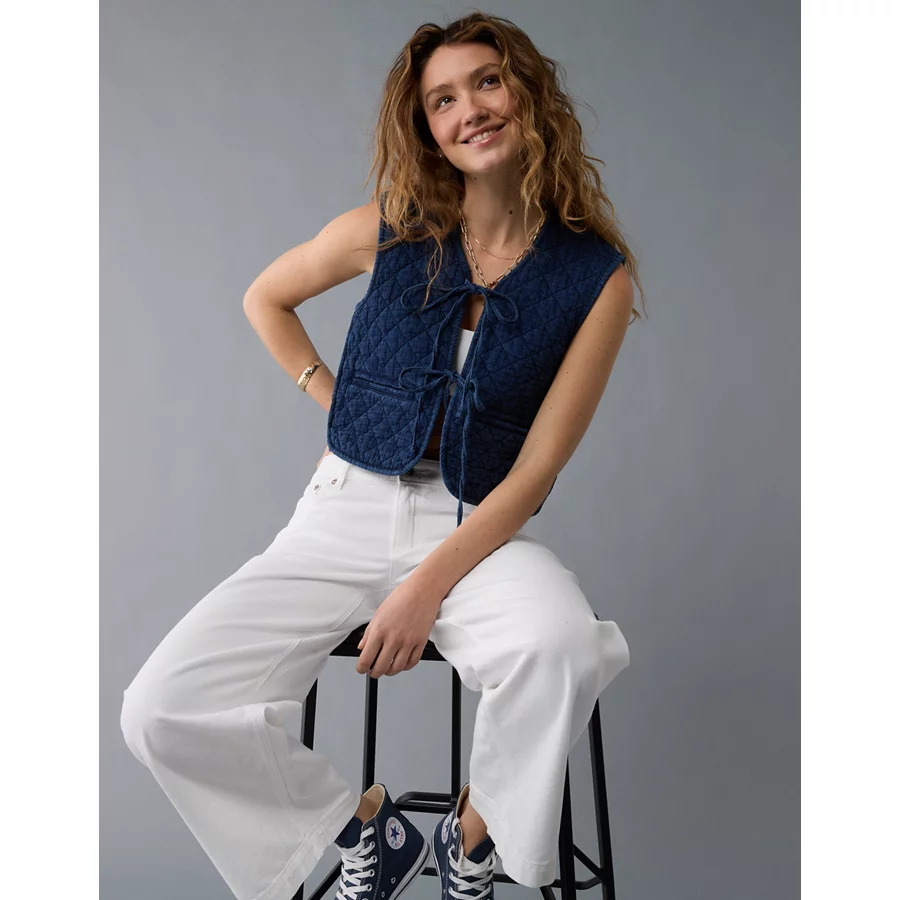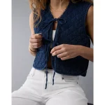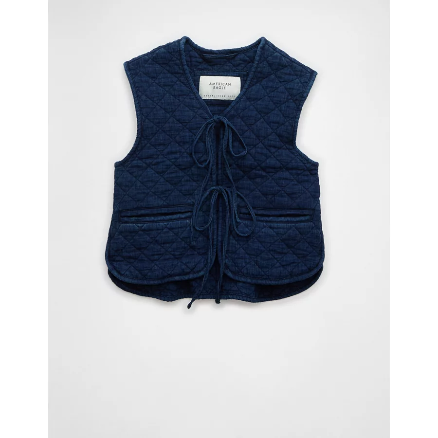 AE Tie Front Quilted Vest – Blue