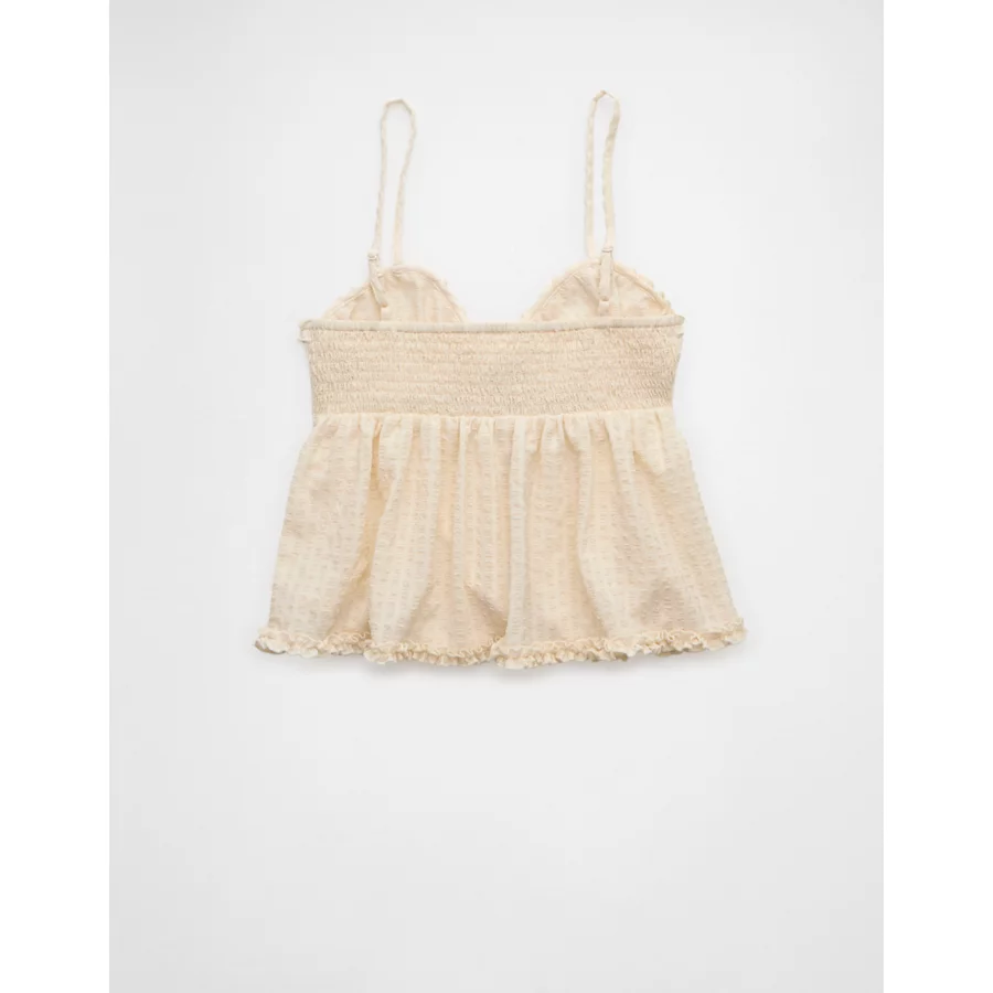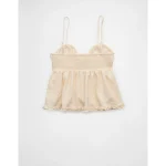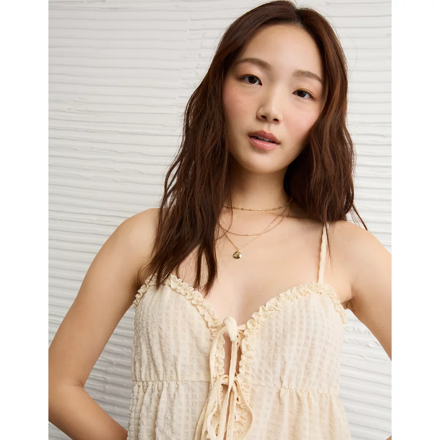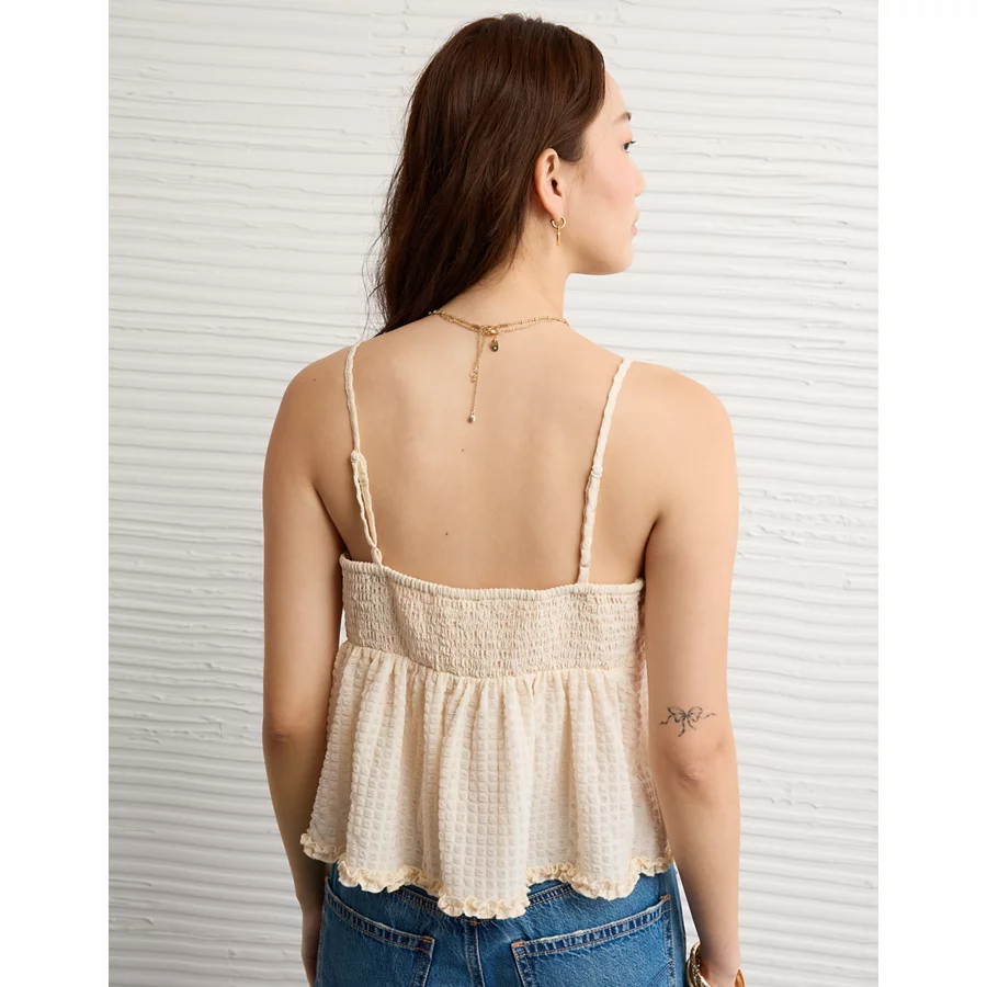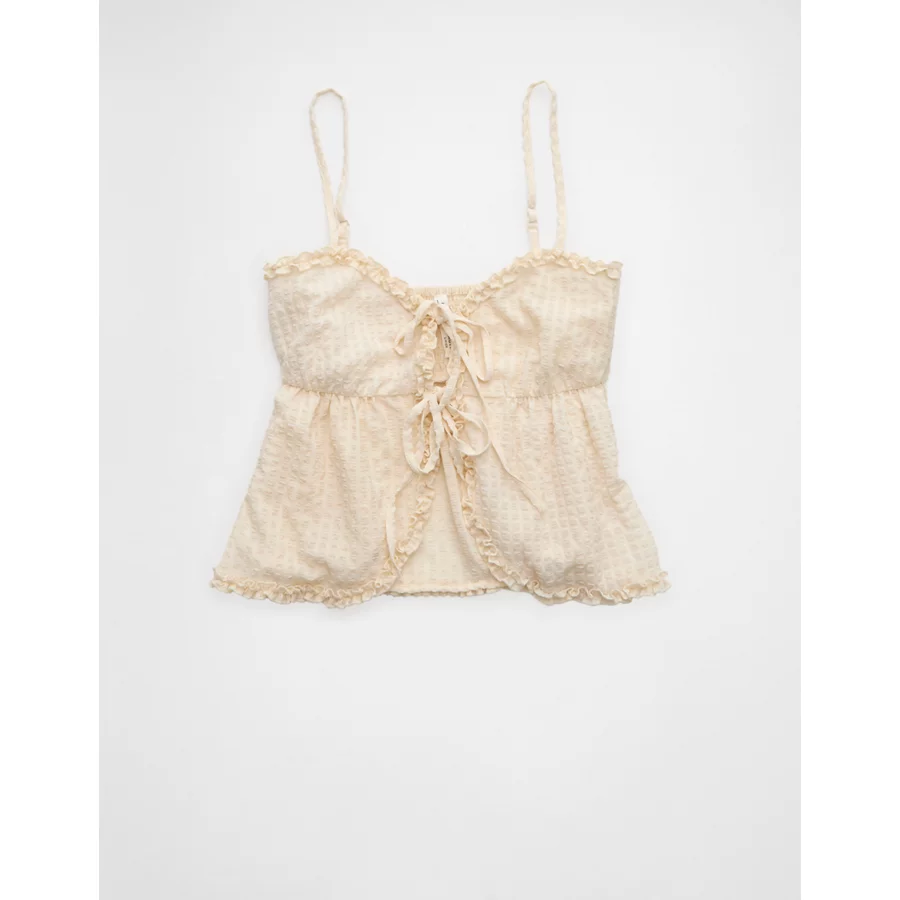 AE Tie Front Ruffle Trim Tank Top – Cream
