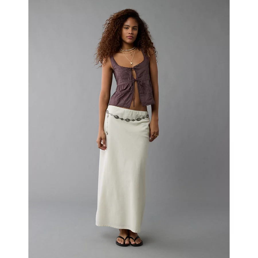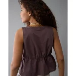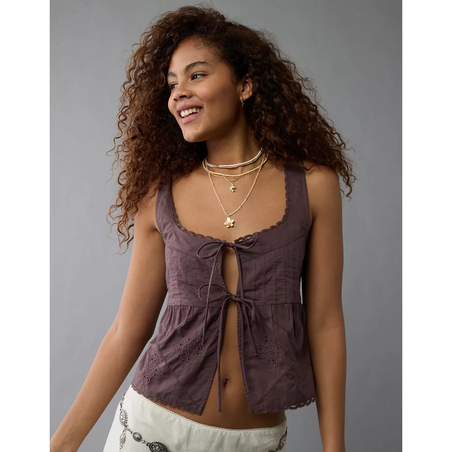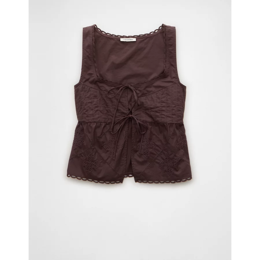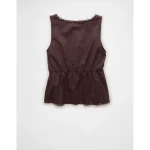AE Tie Front Scoop Neck Flyaway Tank Top – Brown