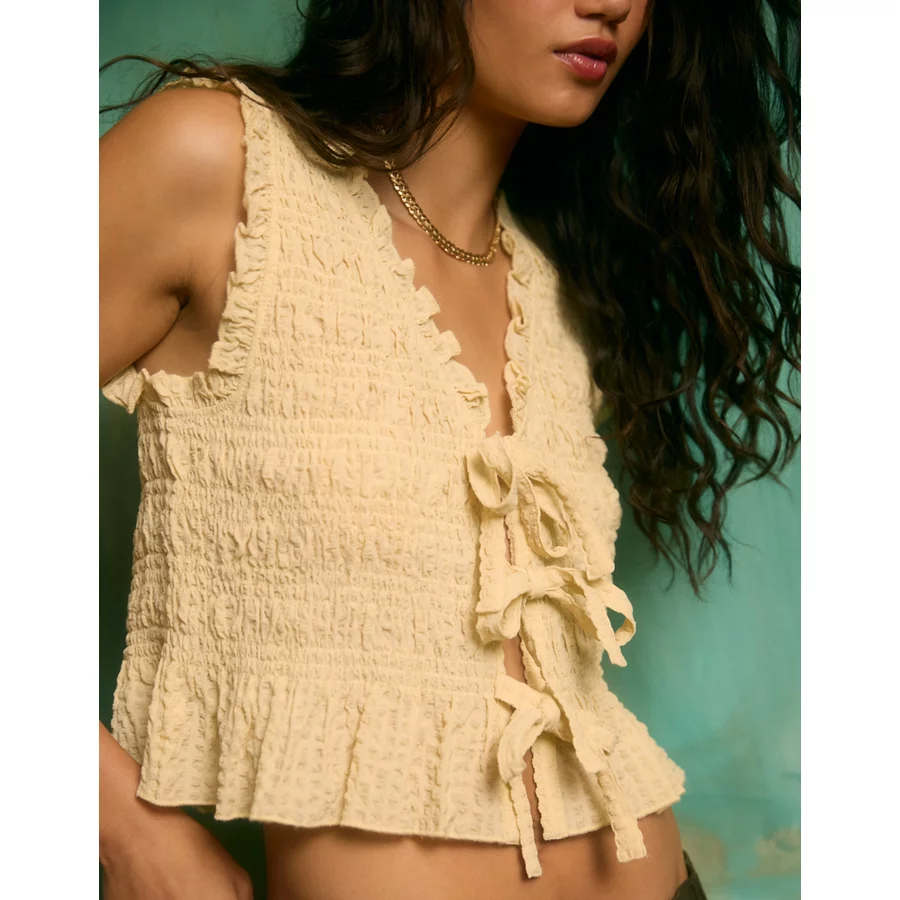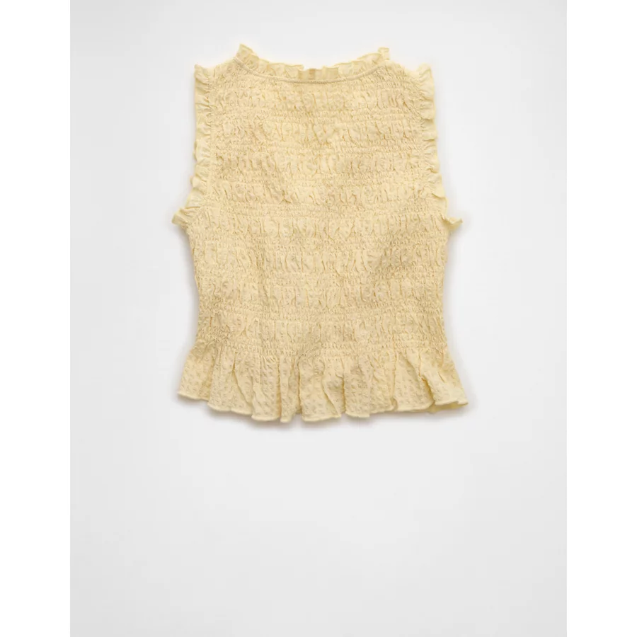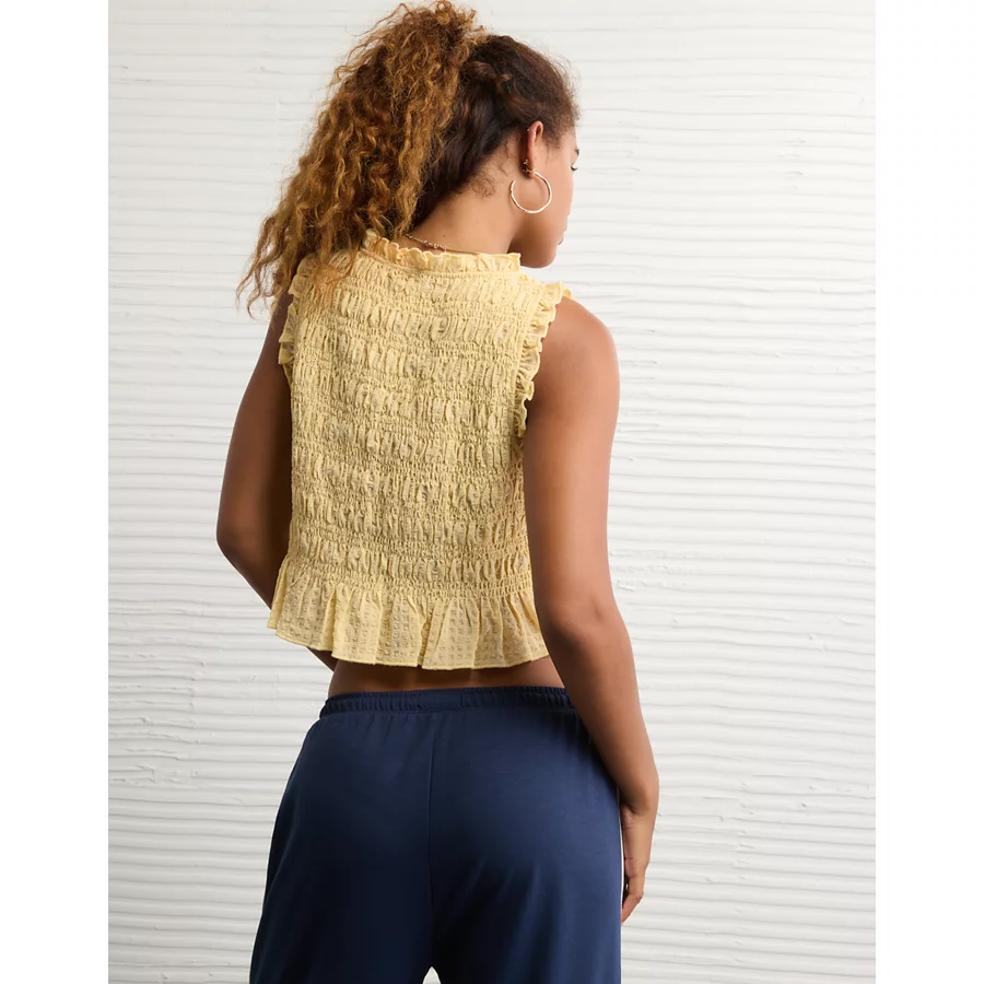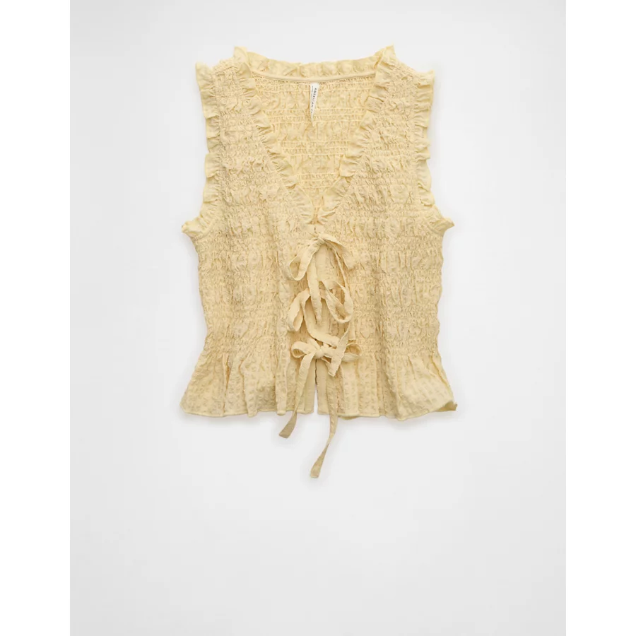 AE Tie-Front Smocked Tank Top – Yellow