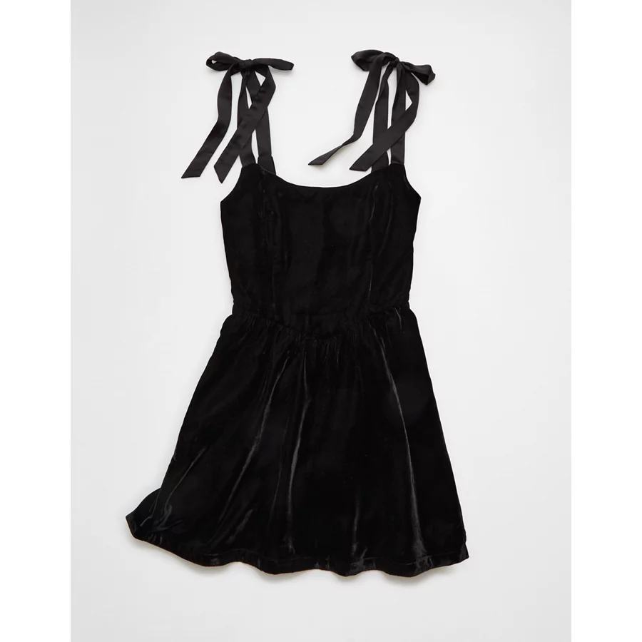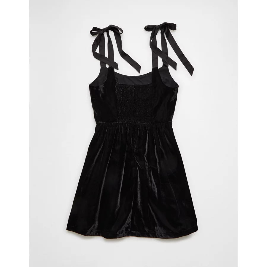 AE Tie-Strap Velvet Mini Dress - Burgundy