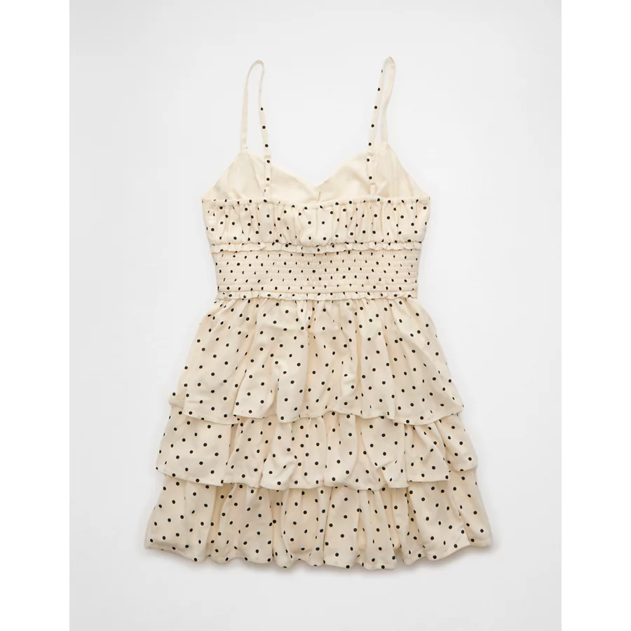 AE Tiered Polka Dot Mini Dress – Cream
