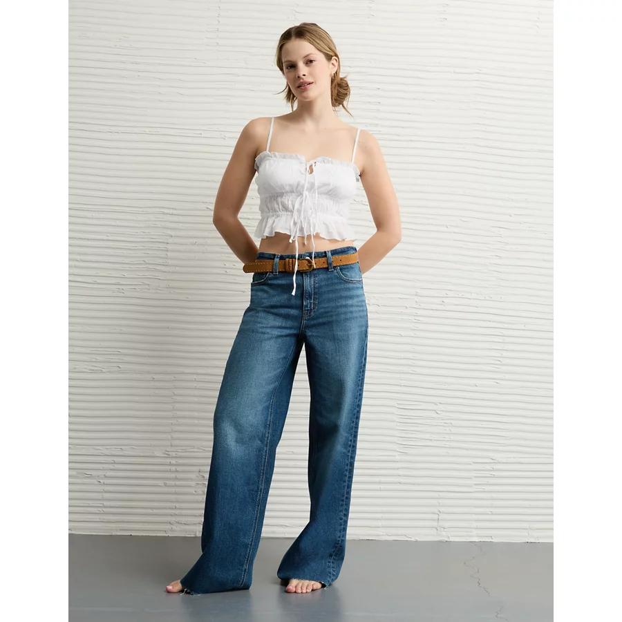 AE Tiered Ruched Tank Top – White