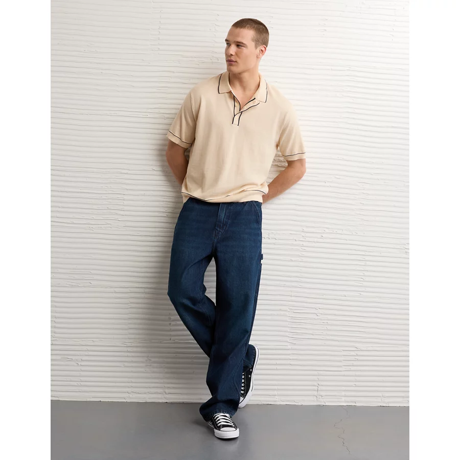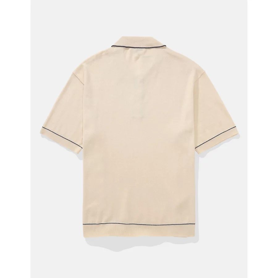 AE Tipped Sweater Polo Shirt – Cream