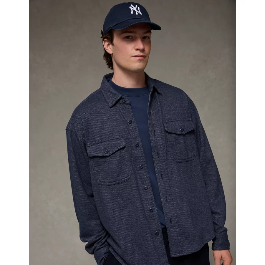 AE Twill Button-Up Shirt – Navy