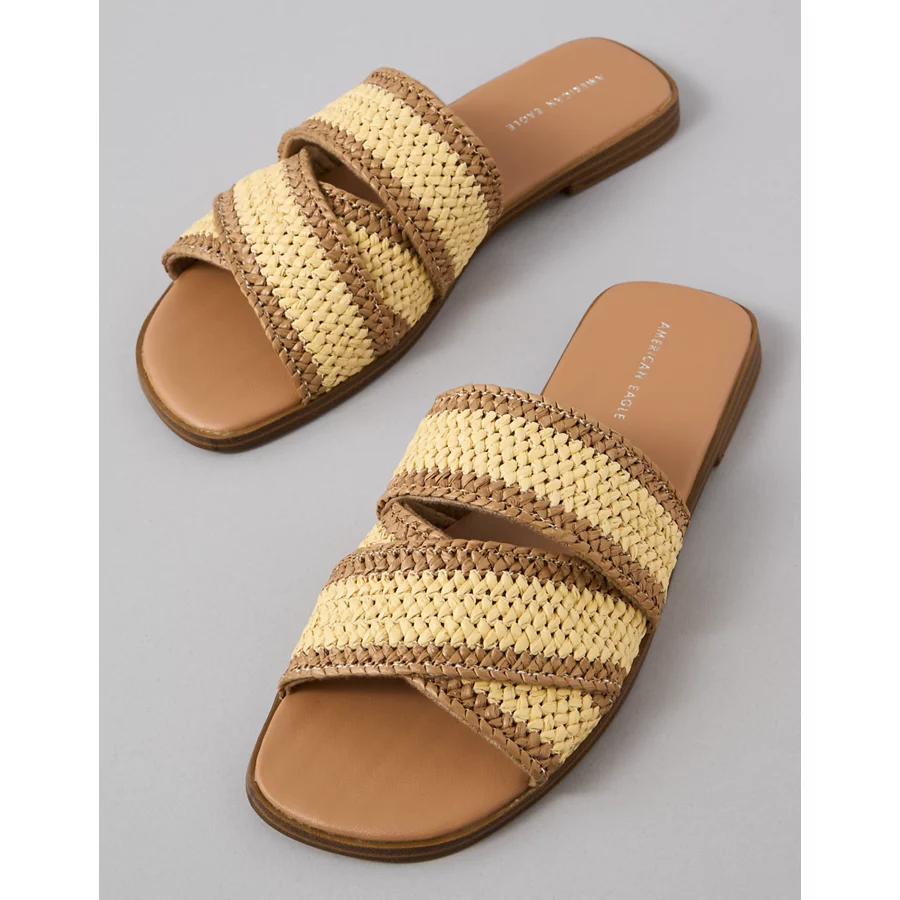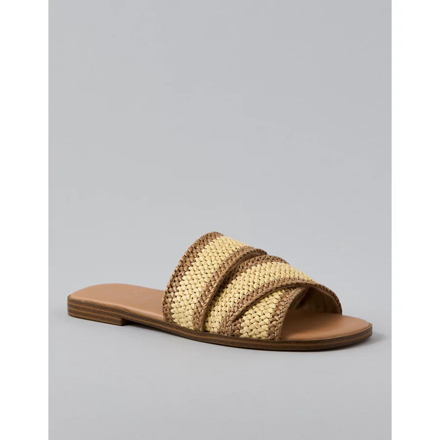 AE Two-Tone Raffia Slide Sandal – Natural