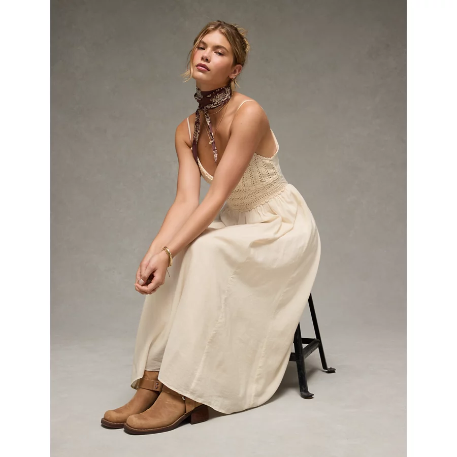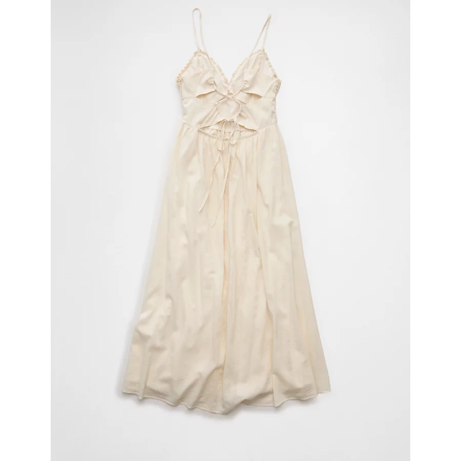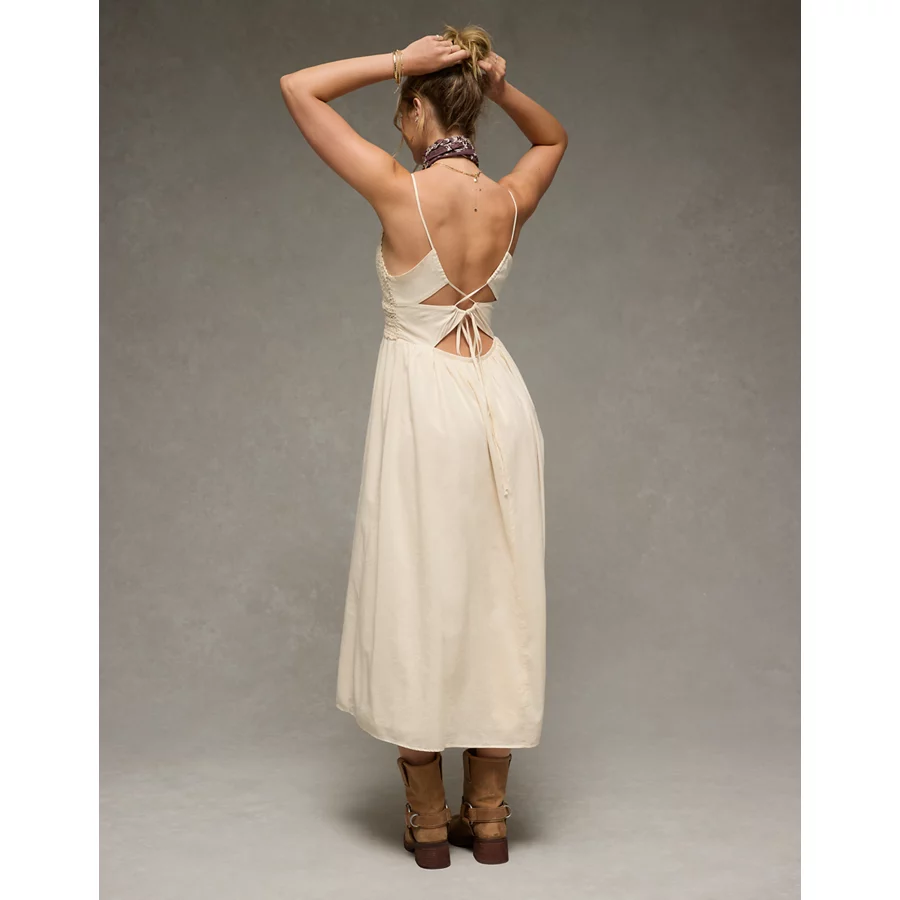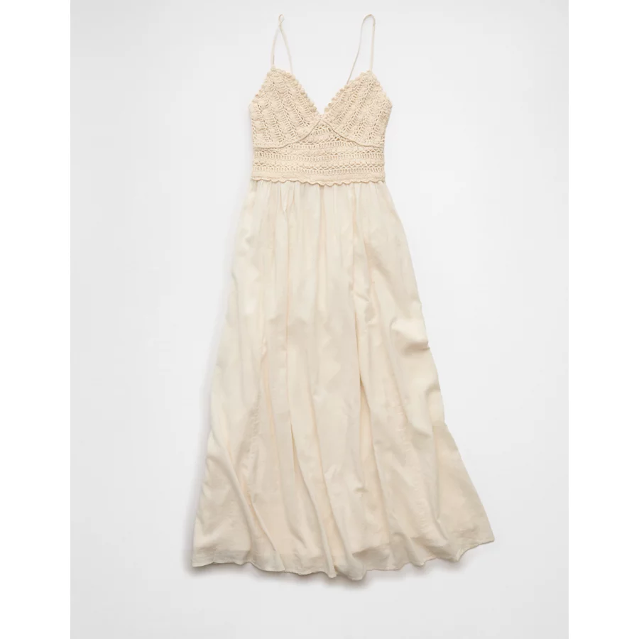 AE V-Neck Crochet Midi Dress – Cream