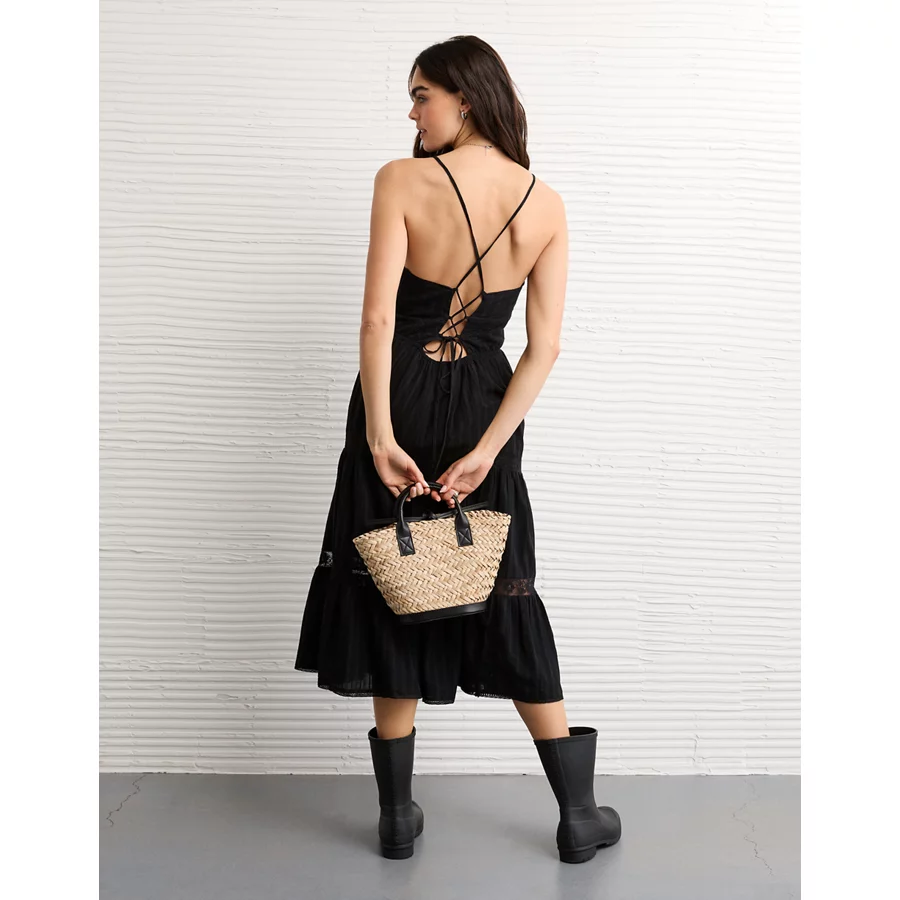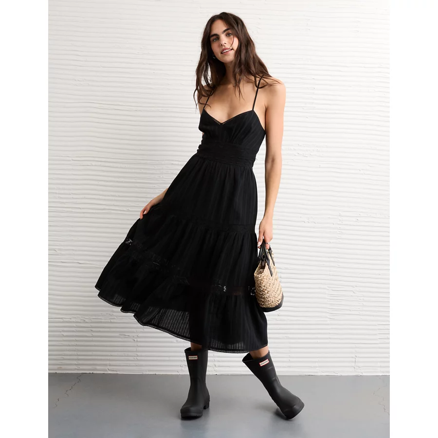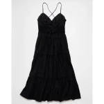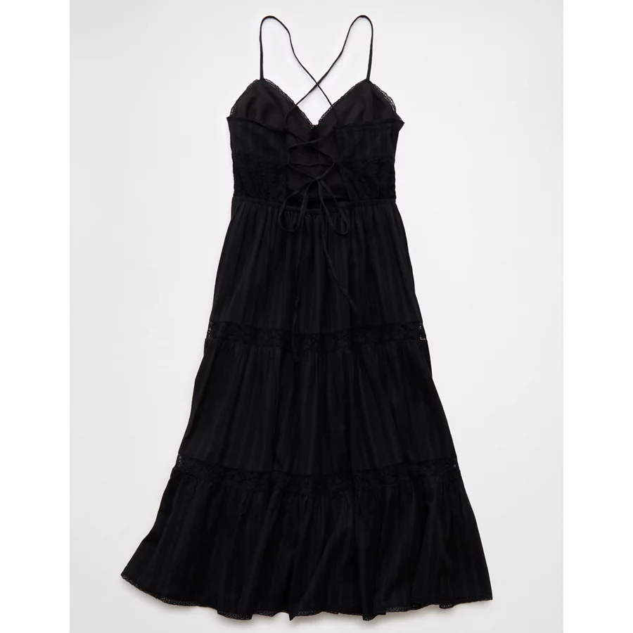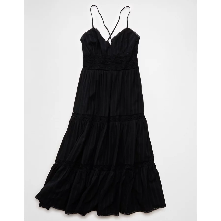 AE V-Neck Lace Tiered Maxi Dress – Black