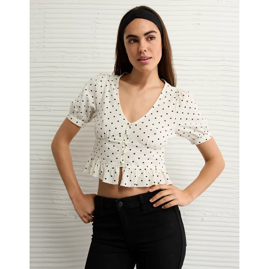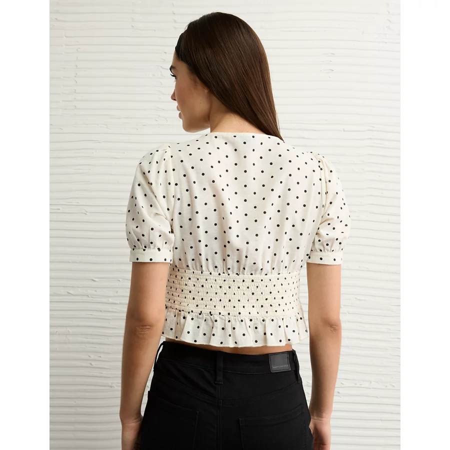 AE V-Neck Puff Sleeve Corset Shirt – Cream