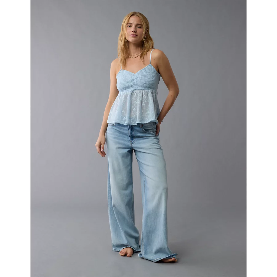 AE V-Neck Smocked Babydoll Cami – Light Blue