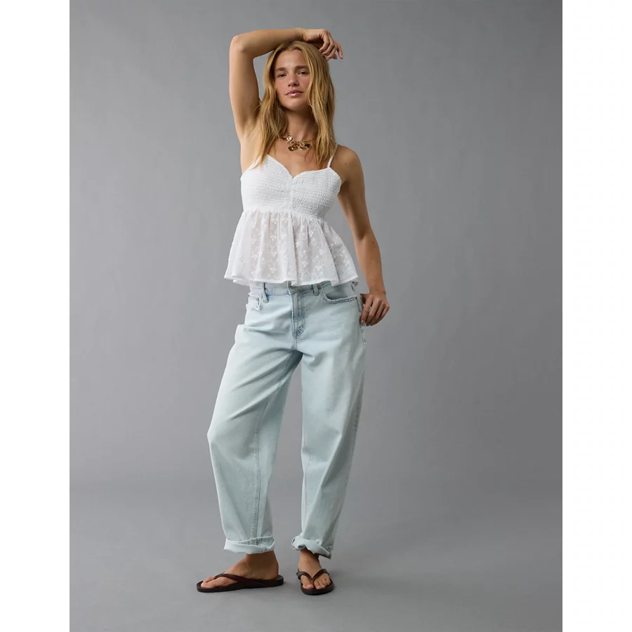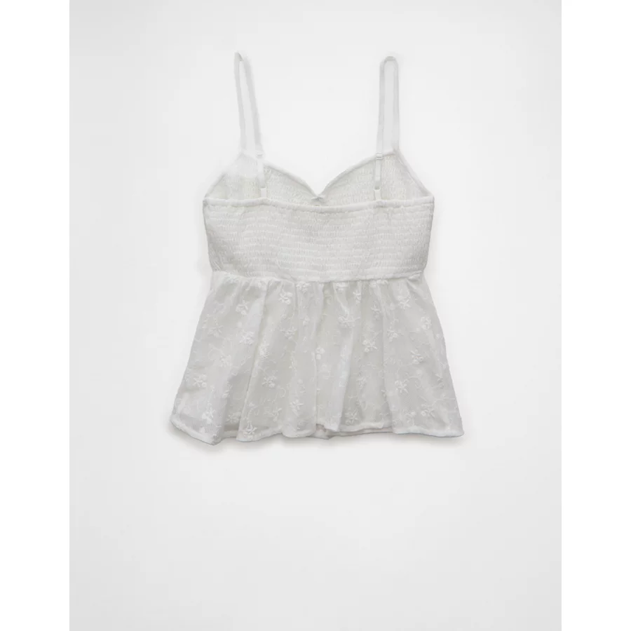 AE V-Neck Smocked Babydoll Cami – White