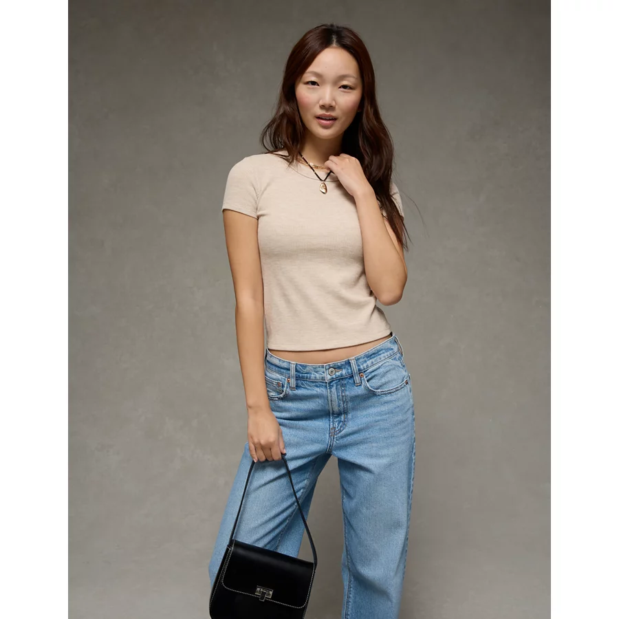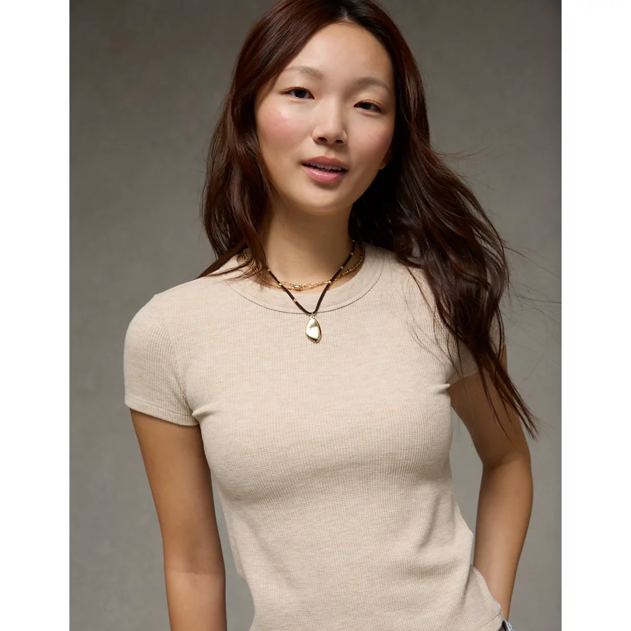 AE Waffle Hey Baby Tee – Oatmeal Heather