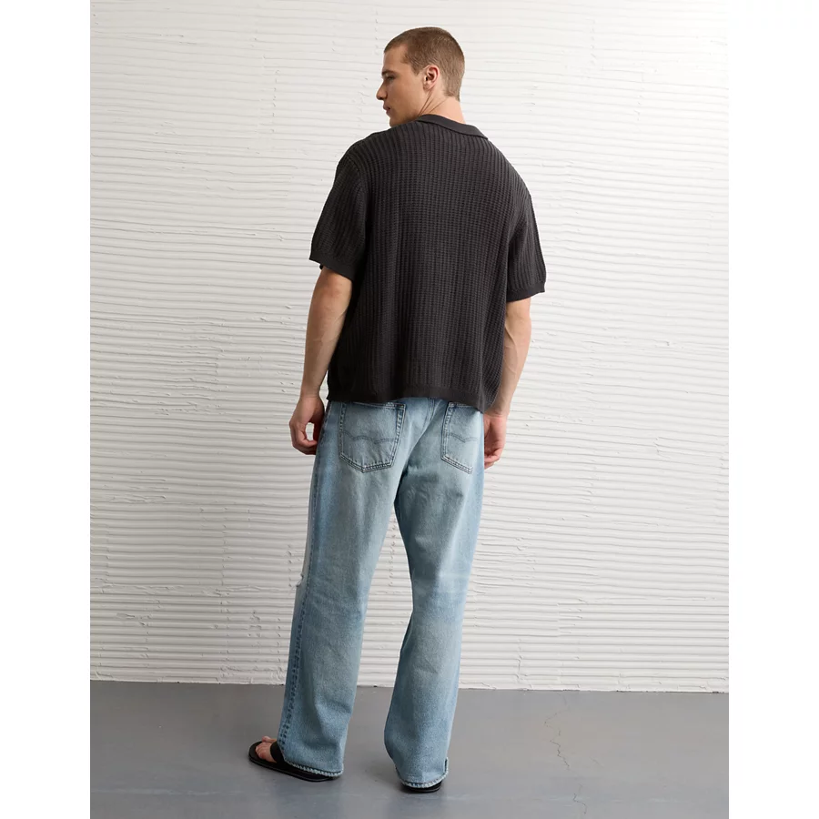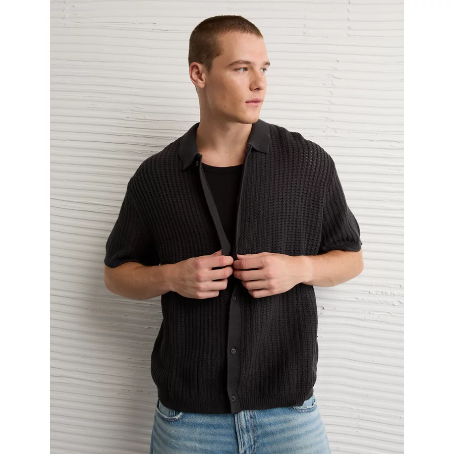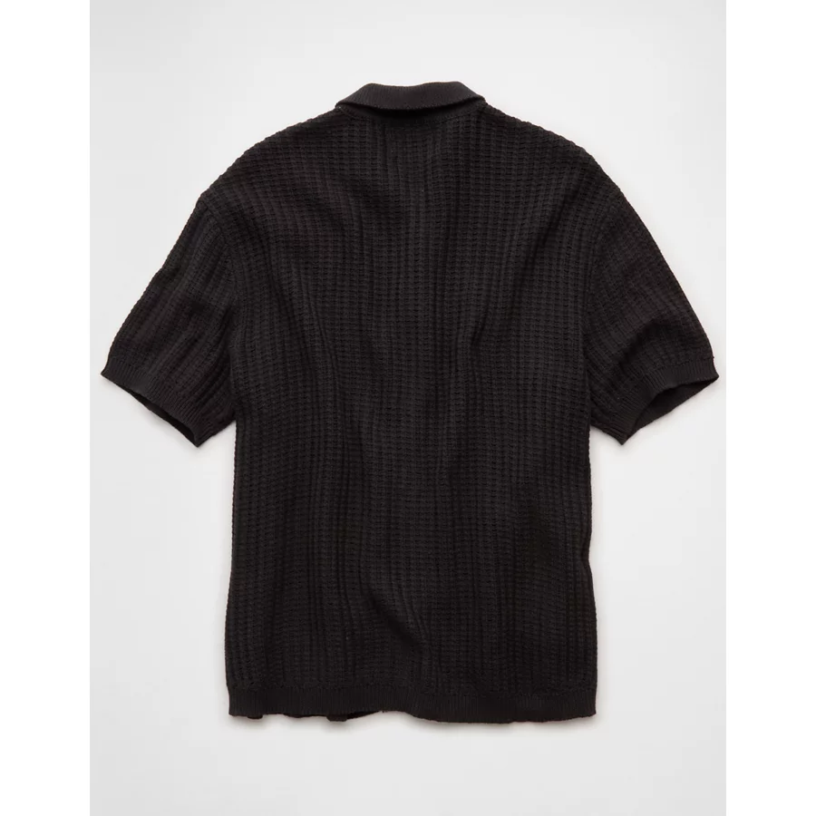 AE Weekend Button-Up Sweater Polo Shirt – Faded Black