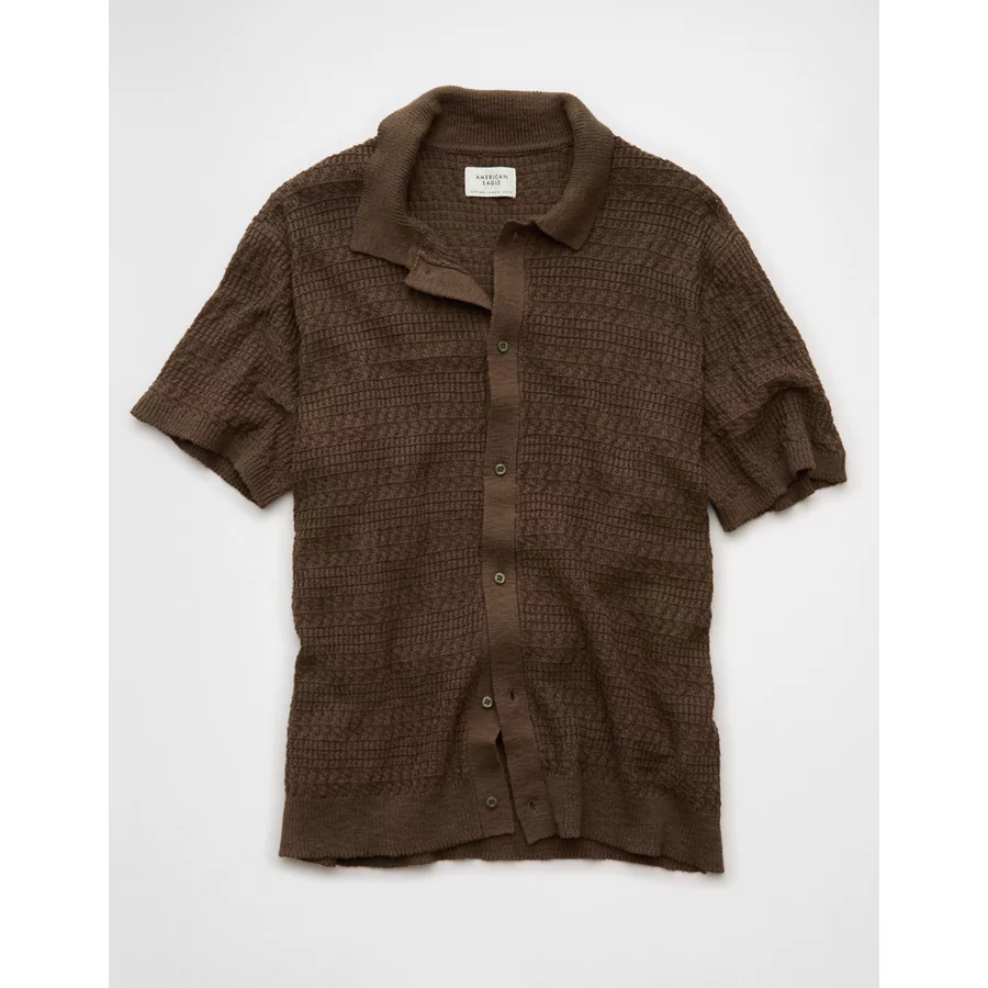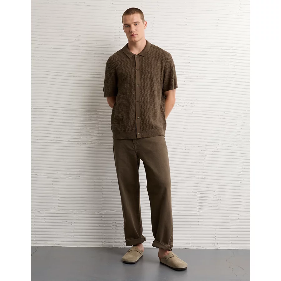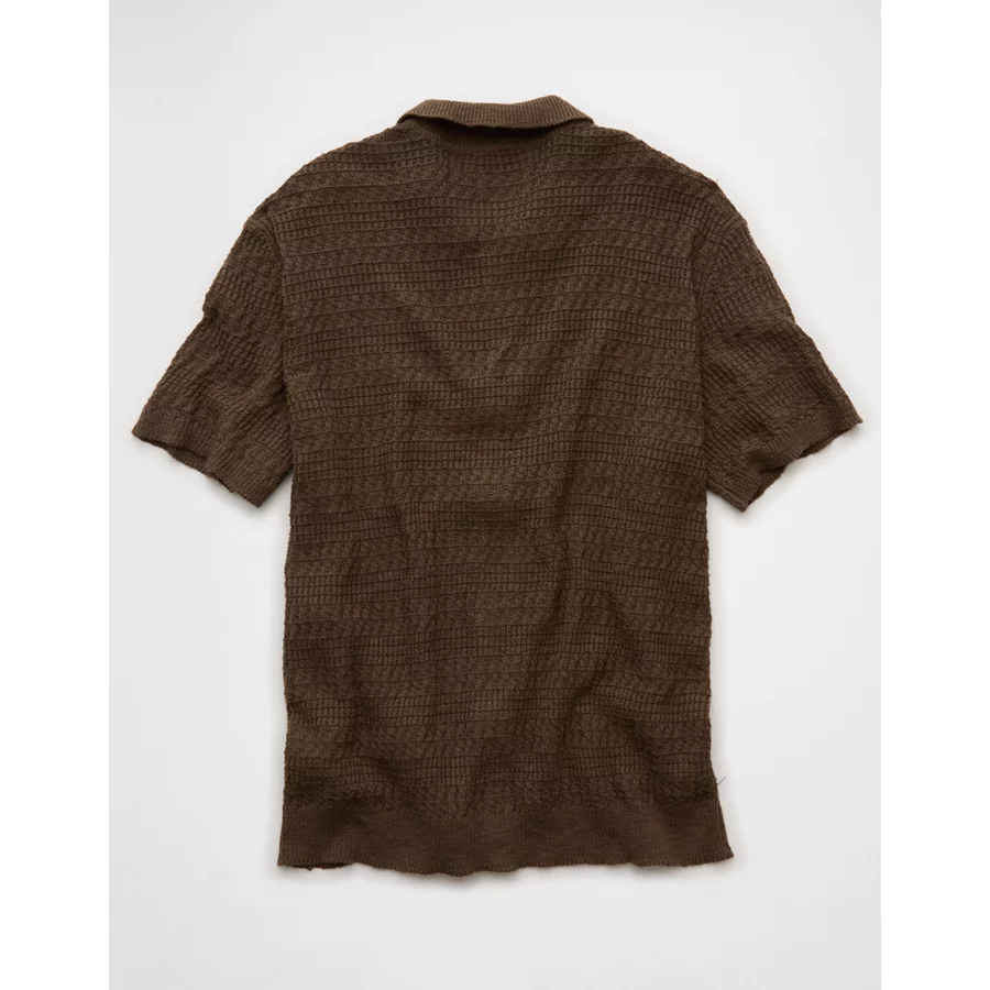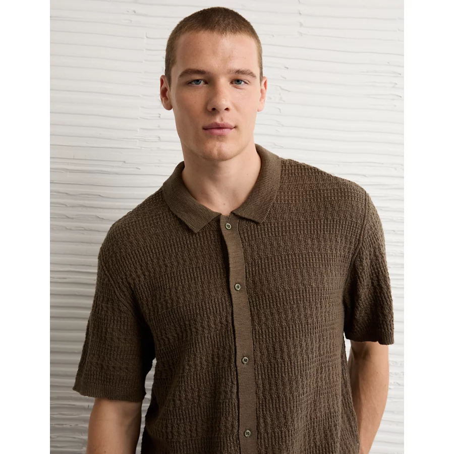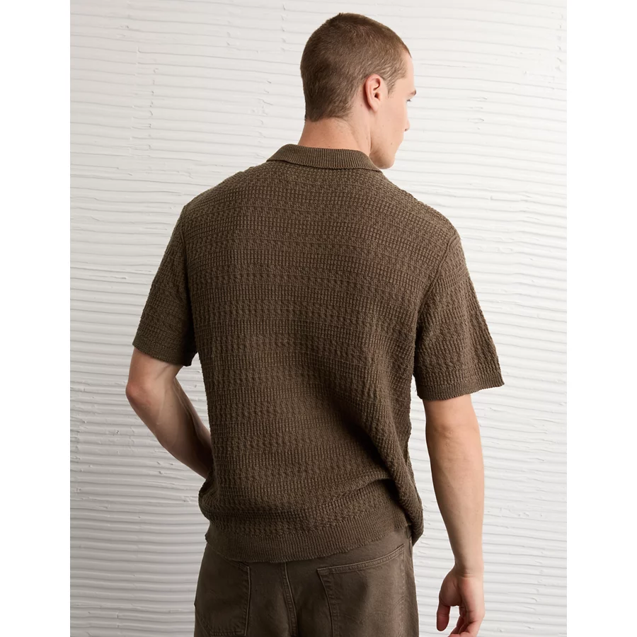 AE Weekend Button-Up Sweater Polo Shirt - Khaki