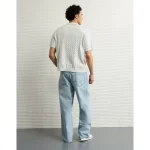 AE Weekend Cable Knit Button-Up Sweater Polo Shirt – Light Heather Gray