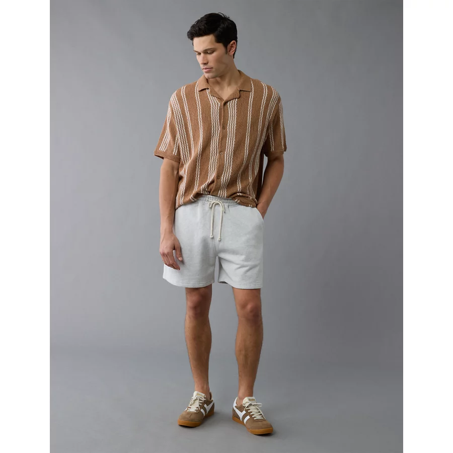 AE Weekend Striped Button-Up Sweater Polo Shirt – Tan