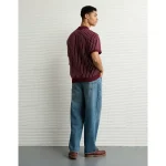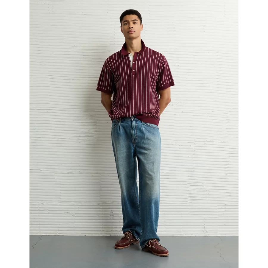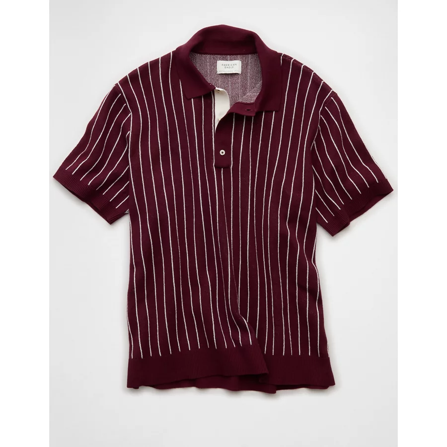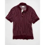 AE Weekend Striped Sweater Polo Shirt – Burgundy