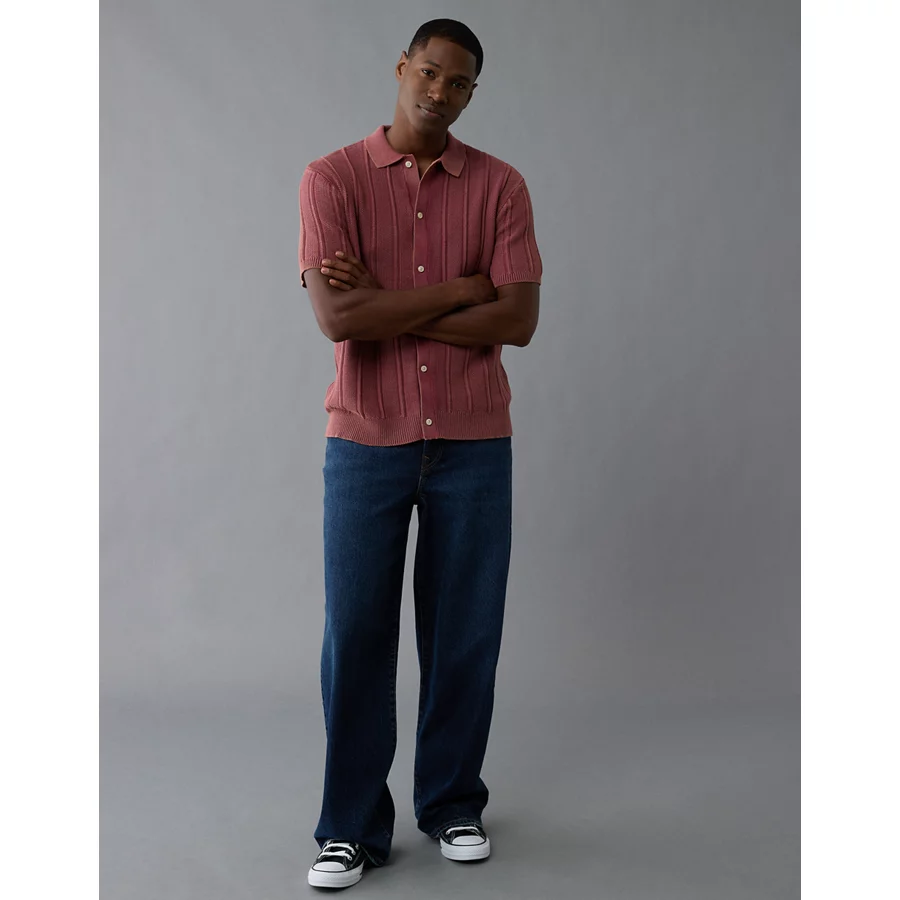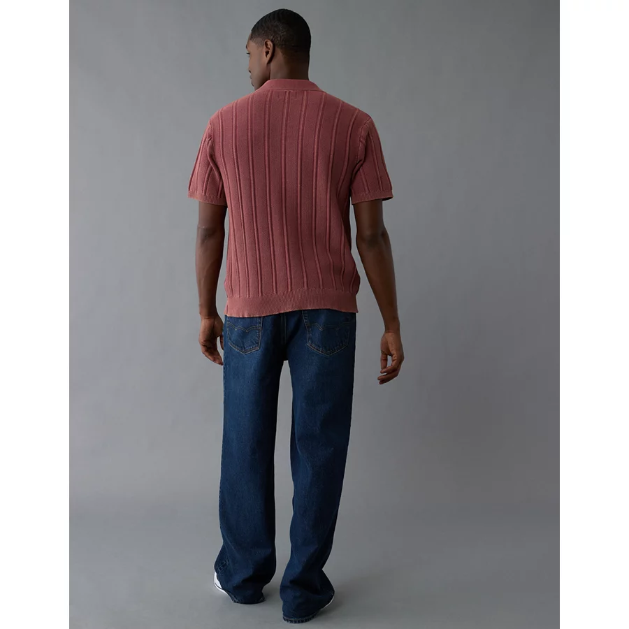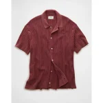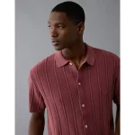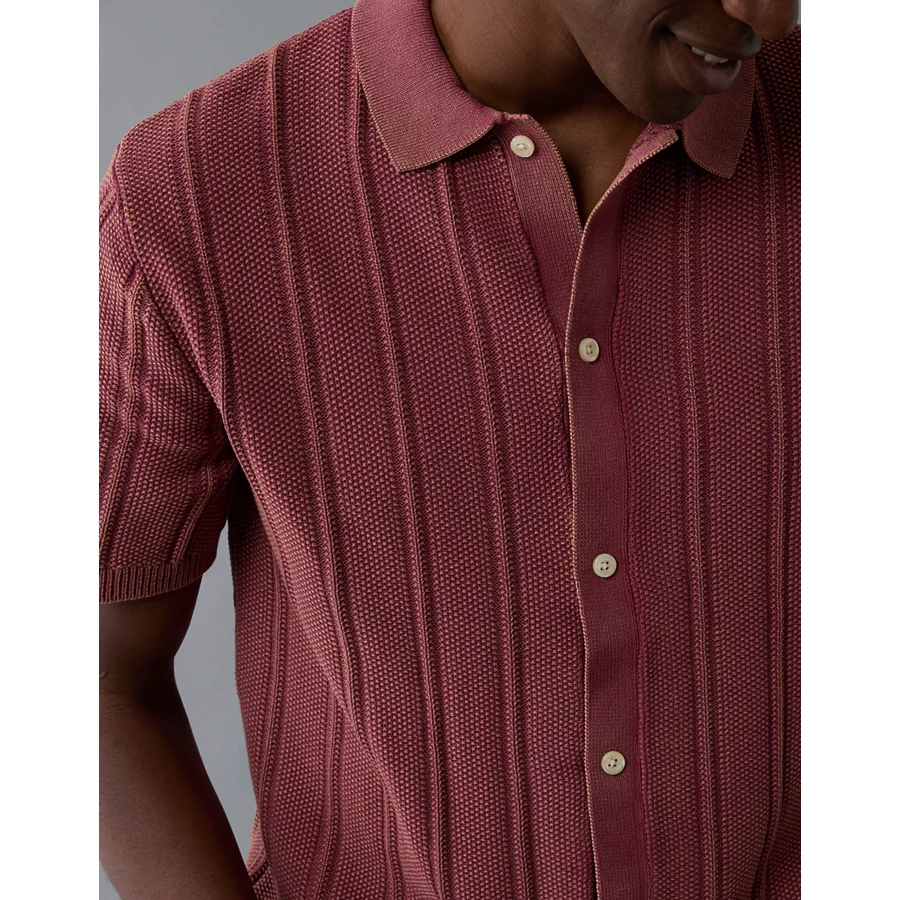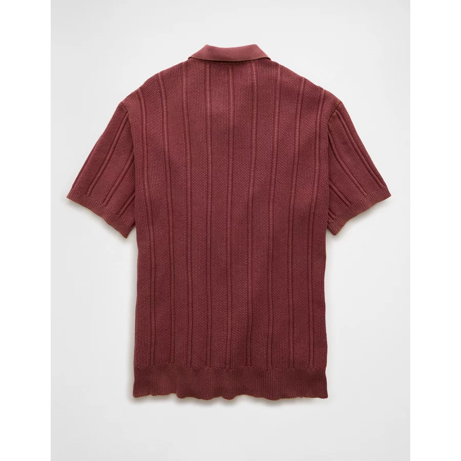 AE Weekend Washed Button-Up Sweater Polo Shirt – Wine