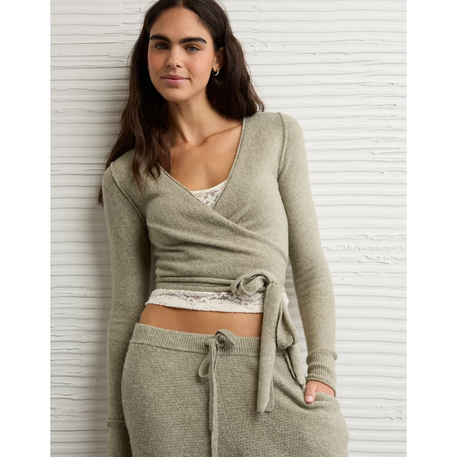 AE Whoa So Soft Ballet Wrap Sweater Top – Faded Olive