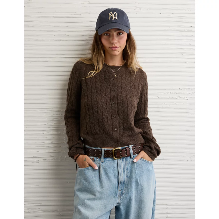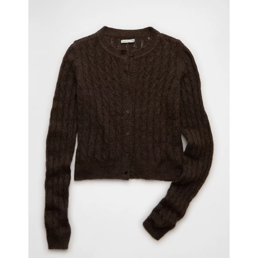 AE Whoa So Soft Button-Front Cardigan – Brown