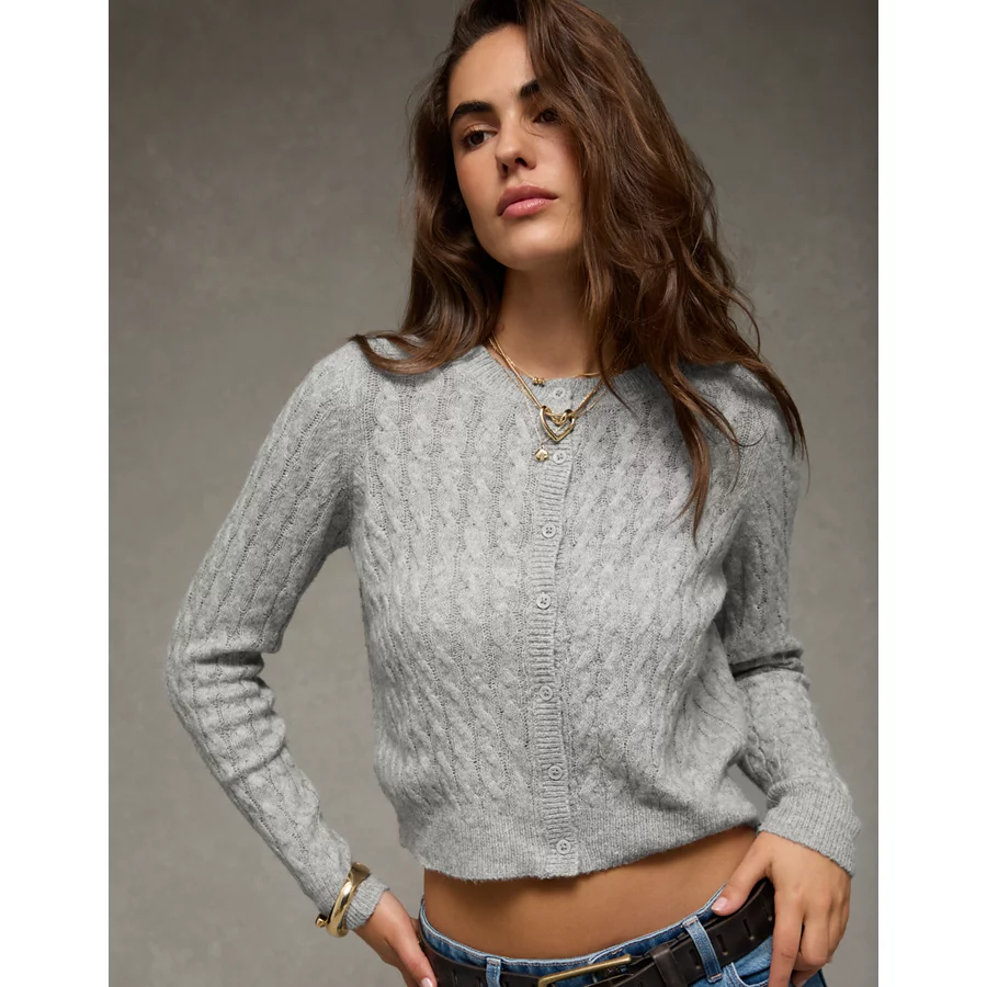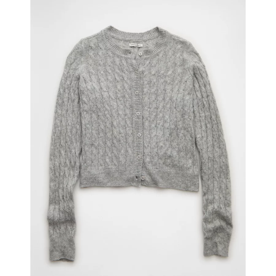 AE Whoa So Soft Button-Front Cardigan – Light Gray