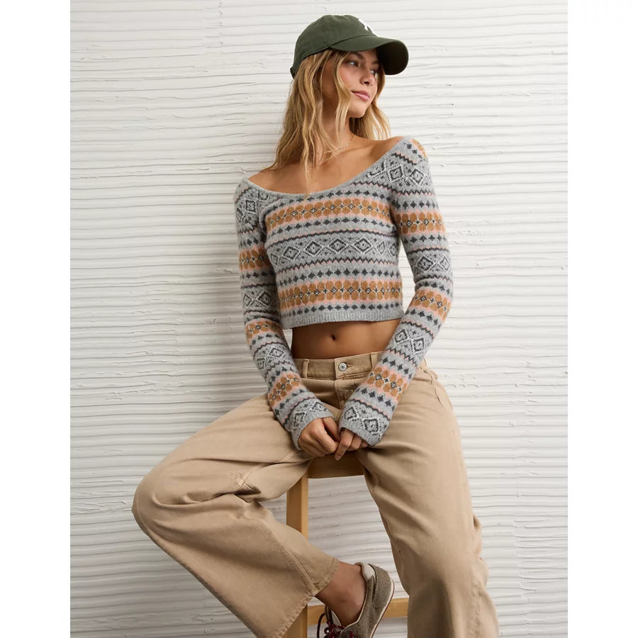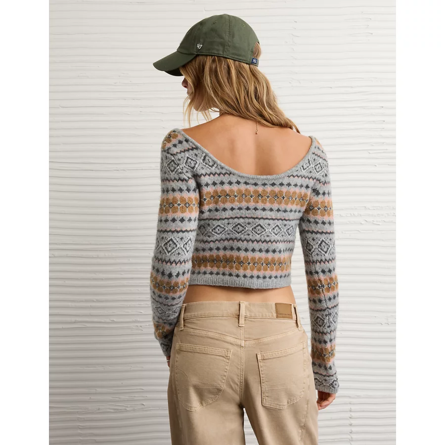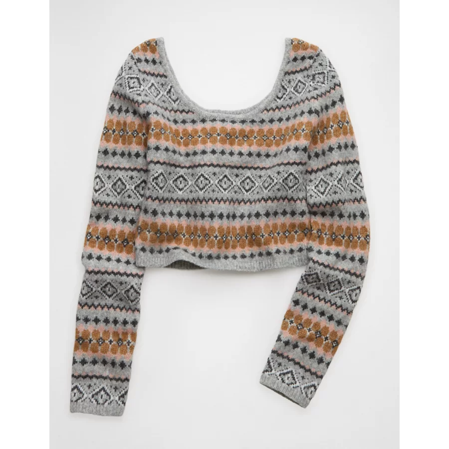 AE Whoa So Soft Cropped Scoop Neck Sweater – Grey