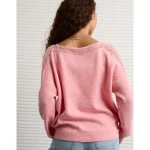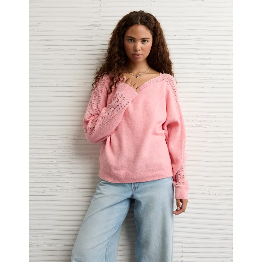 AE Whoa So Soft Lace Sweater – Pink Note