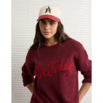 AE Woah So Soft Classic Crew Neck Sweater – Maroon