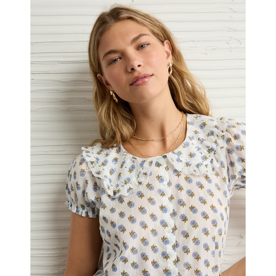 AE x The Summer I Turned Pretty Collared Puff Sleeve Blouse – Multi