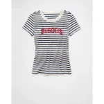 AE x The Summer I Turned Pretty Graphic Hey Baby Tee – Retro Indigo Stripe