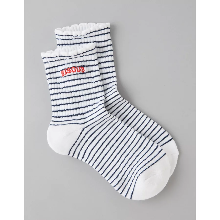 AE x The Summer I Turned Pretty Ruffle Cropped Crew Socks – Black Stripe