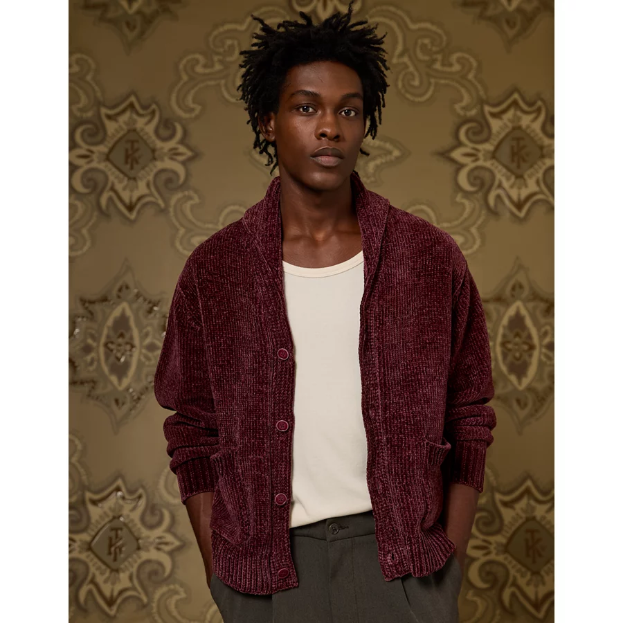 AE x Tru Kolors Chenille Shawl Collar Cardigan – Burgundy