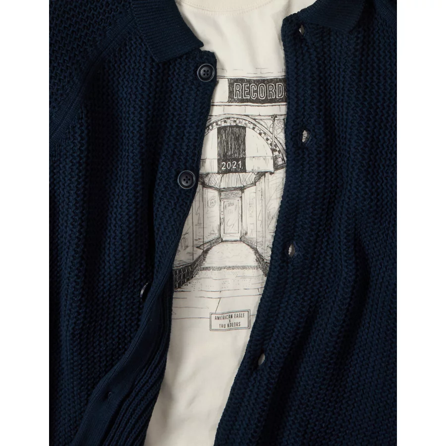 AE x Tru Kolors Cotton Button-Front Cardigan – Navy