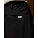 Pleated front with partial elasticized waist