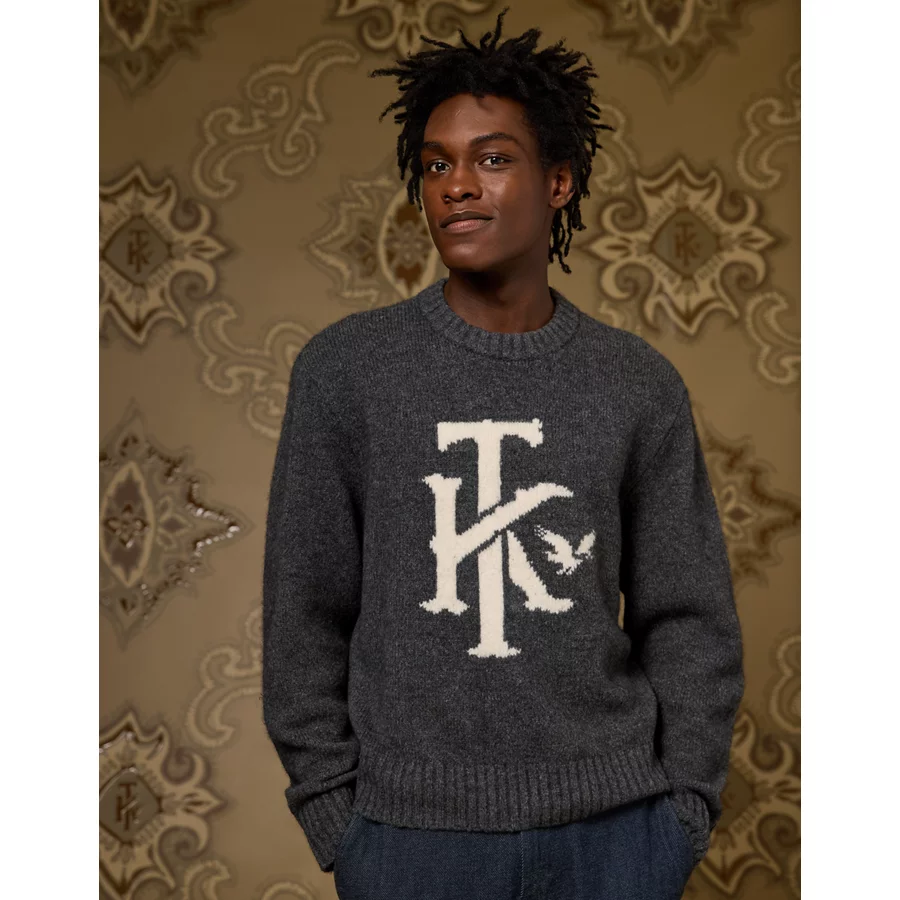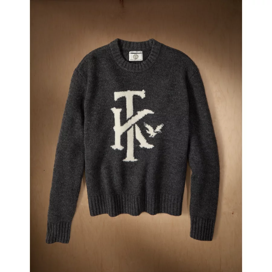 AE x Tru Kolors Wool-Cashmere Crew Neck Sweater – Charcoal Heather
