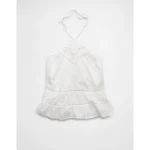 Chiffon fabricV-neckAsymmetrical ruffle details throughoutLeg slit 100% CottonMachine washImported Slip dress silhouetteMaxi lengthSleeveless