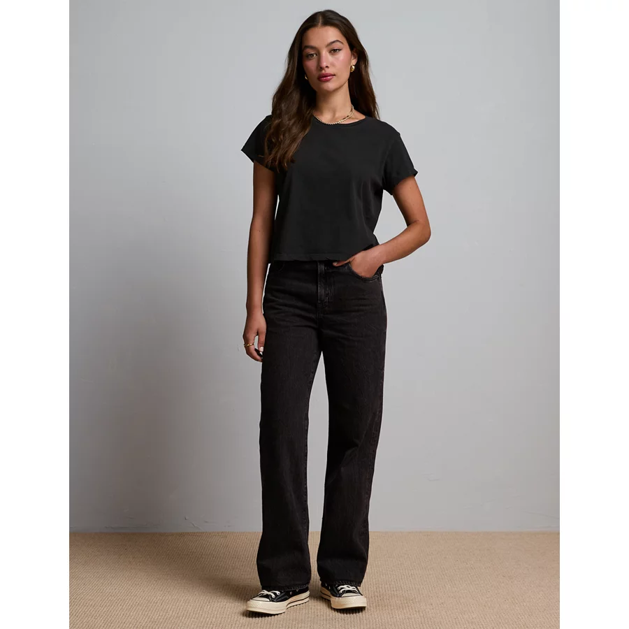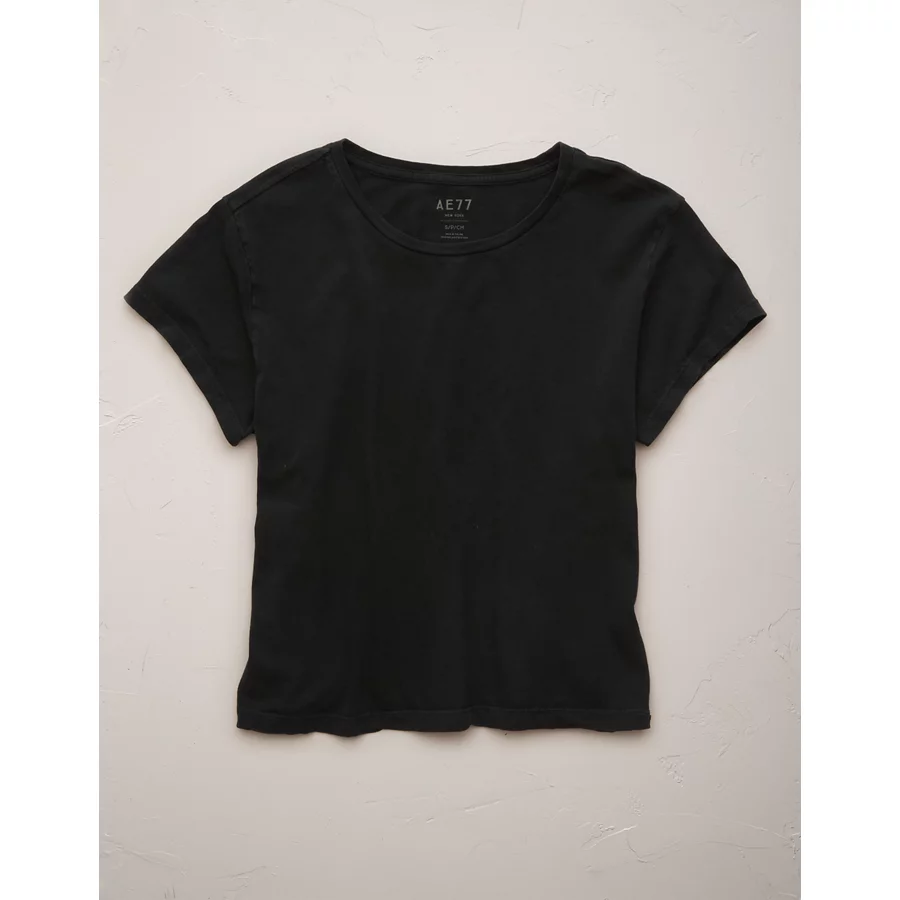 AE77 Premium Boxy Cropped Crewneck T-Shirt – Black