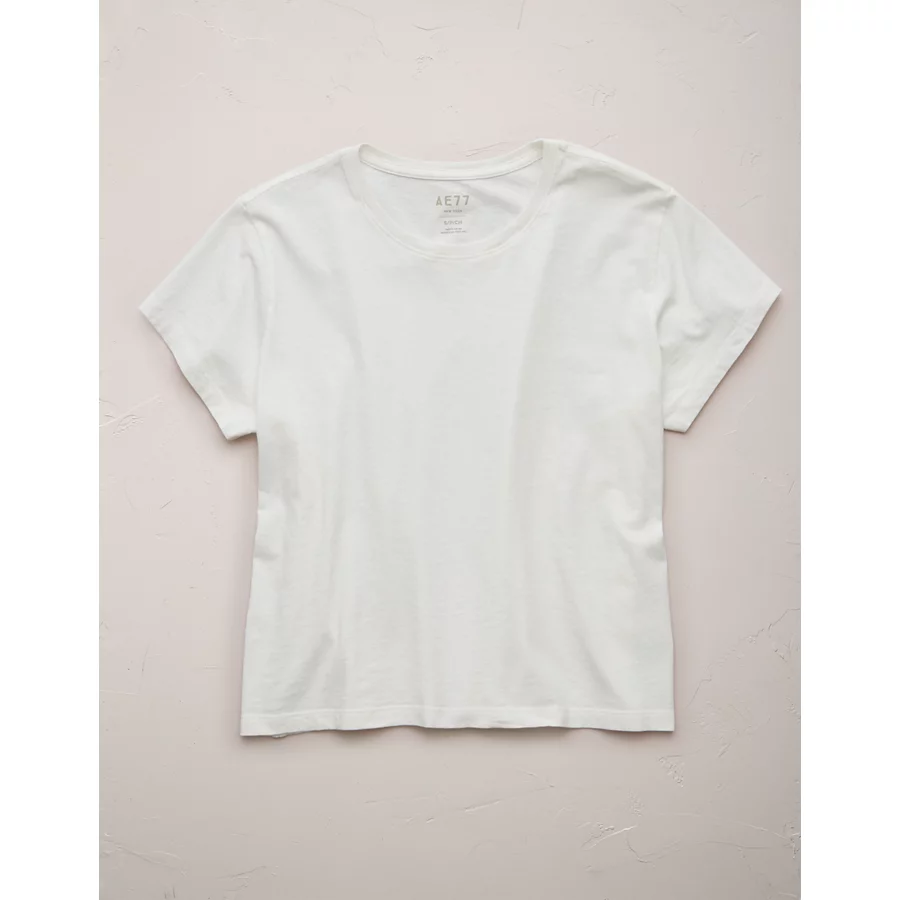 AE77 Premium Boxy Cropped Crewneck T-Shirt – White