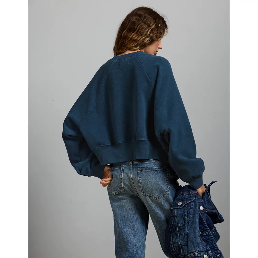 AE77 Premium Cropped Fleece Sweatshirt – Dark Blue