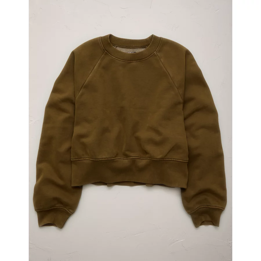 AE77 Premium Cropped Fleece Sweatshirt – Olive