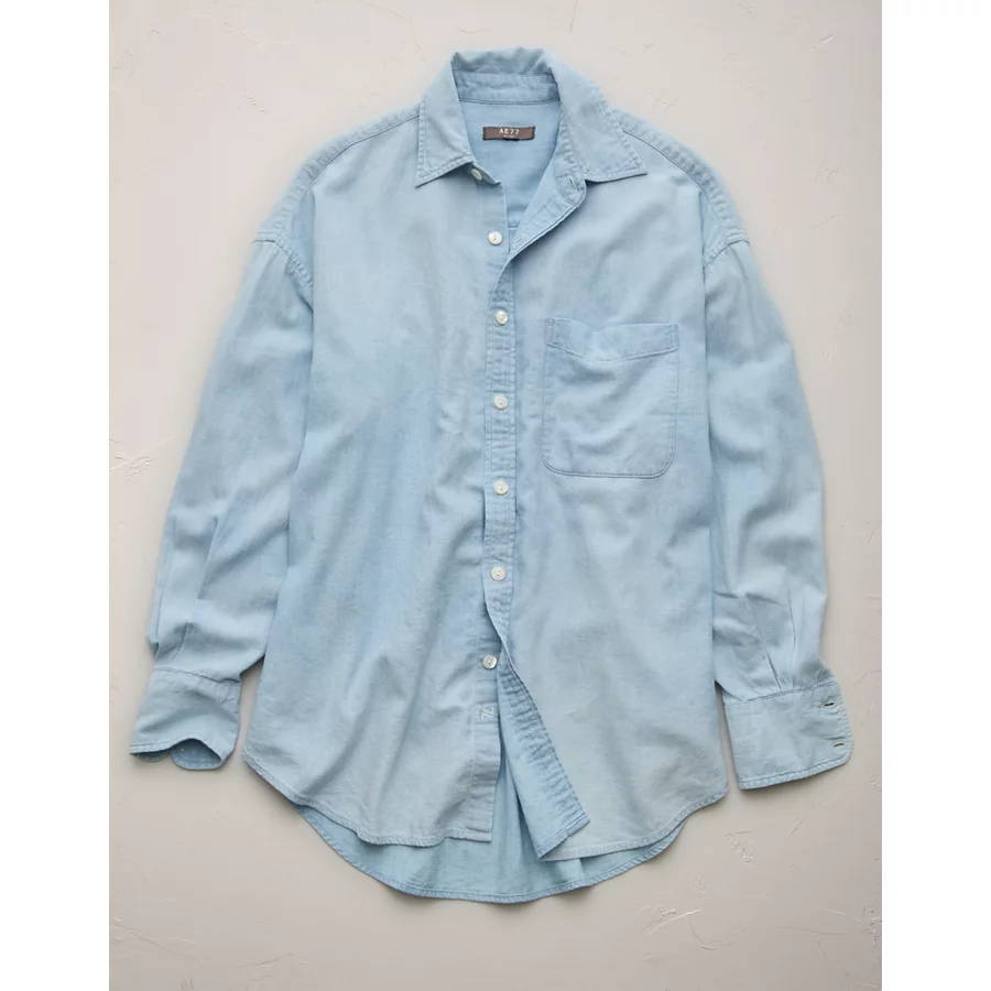 AE77 Premium Denim Boyfriend Shirt – Light Wash