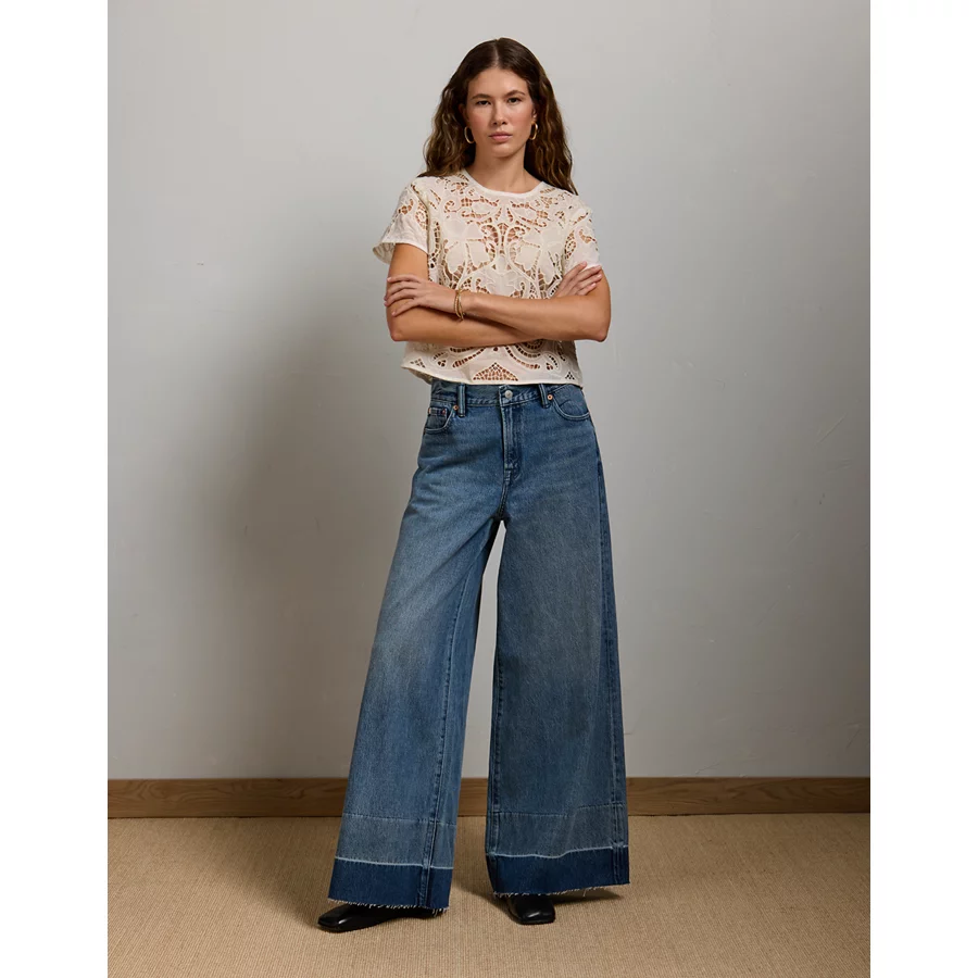 AE 8″ Dreamy Drape Stretch Low-Rise Baggy Jort – Medium Bright Indigo