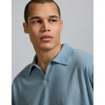 AE77 Premium Linen-Blend Polo Shirt – Light Blue
